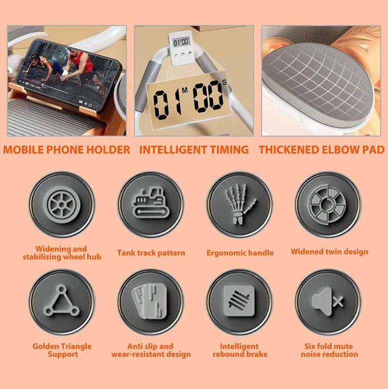 Con su tecnología de rebote automático y diseño de doble rueda, permite un ejercicio controlado y eficiente, enfocándose en abdominales, flexores de cadera, hombros y espalda.