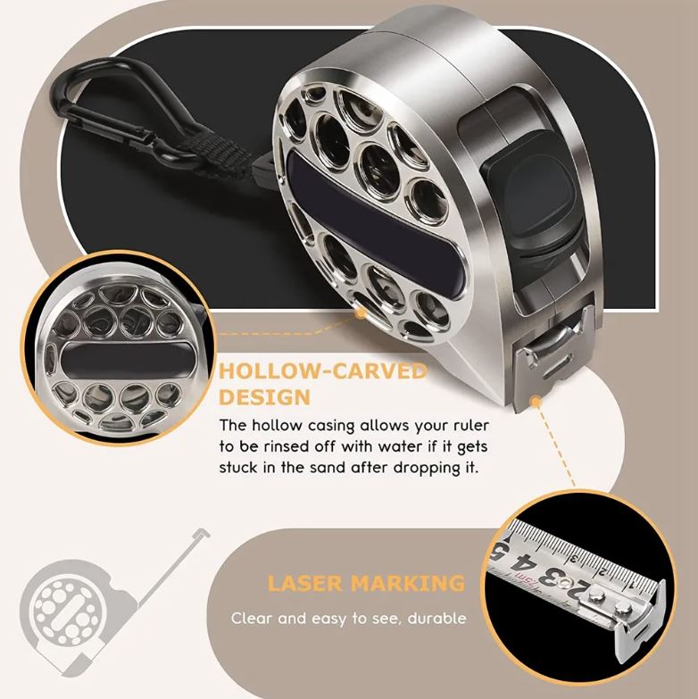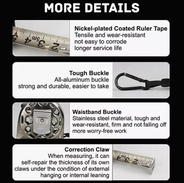 📏 Tamaño: 7,5 m de largo y 25 mm de ancho, con una hoja de acero recubierta de nailon duradero.