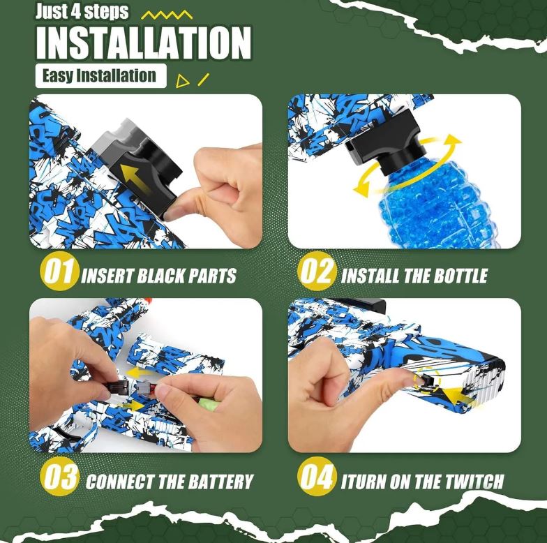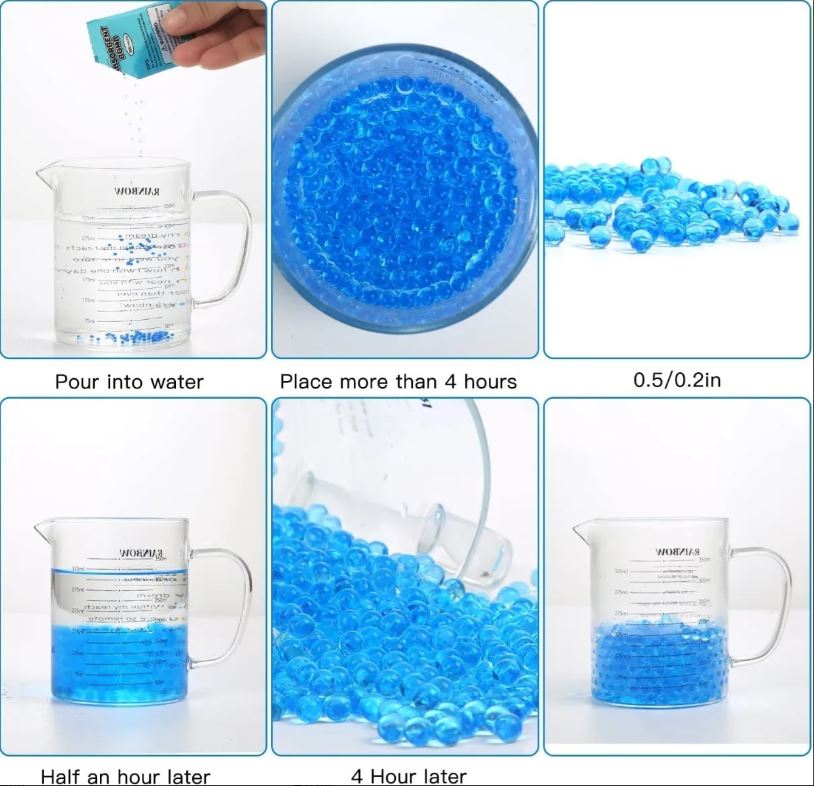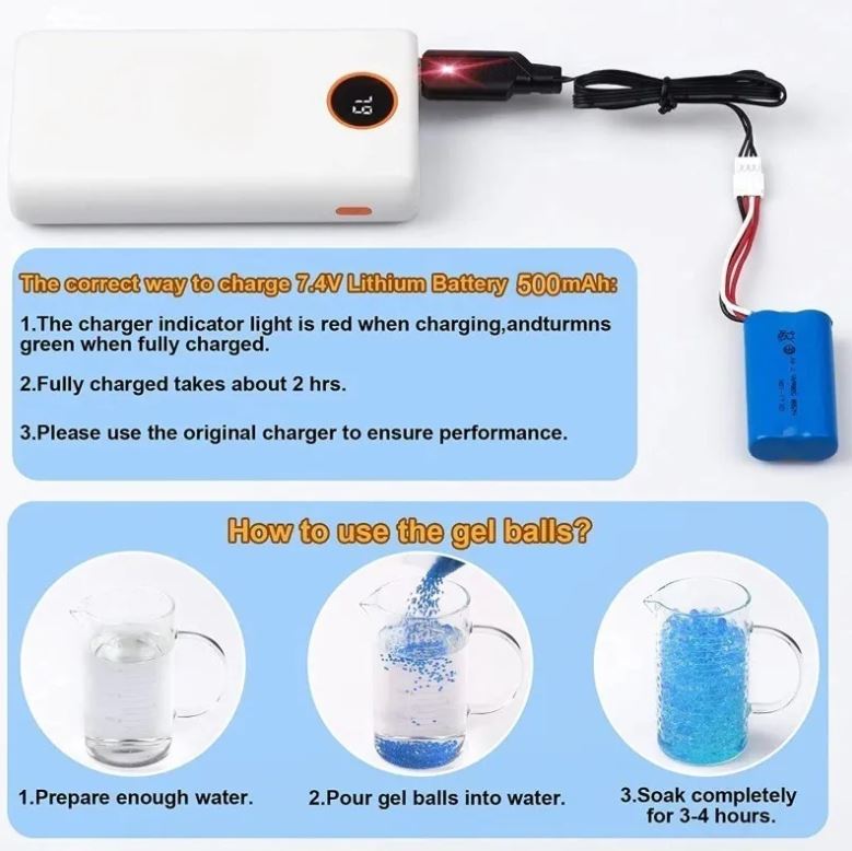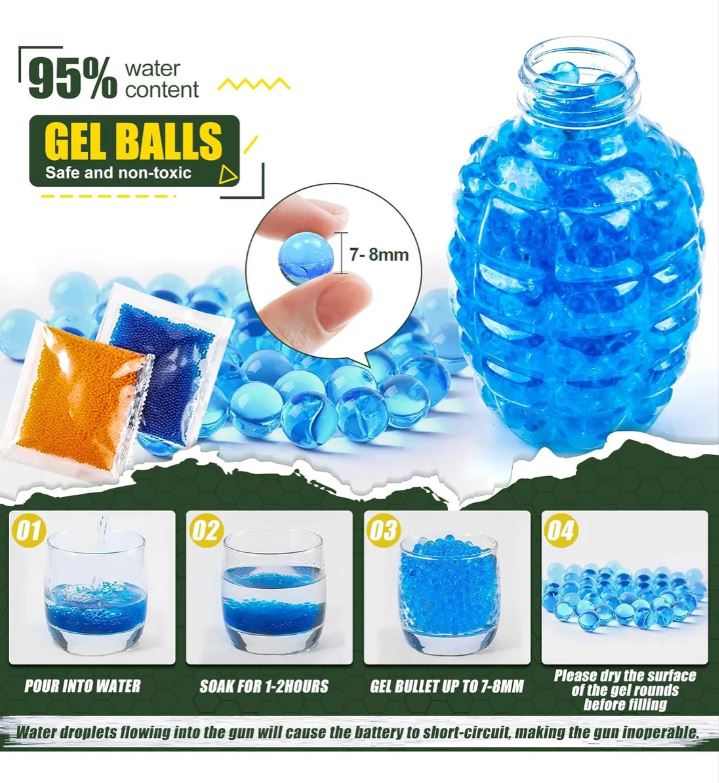 🔹 Remoja las bolas de gel en agua por 3-4 horas antes de usarlas. 🔹 Niños menores de 12 años deben jugar bajo supervisión. 🔹 Ideal para niños de 6 a 18 años, ¡aunque los adultos también pueden unirse a la diversión! 🎉👨👩👧👦