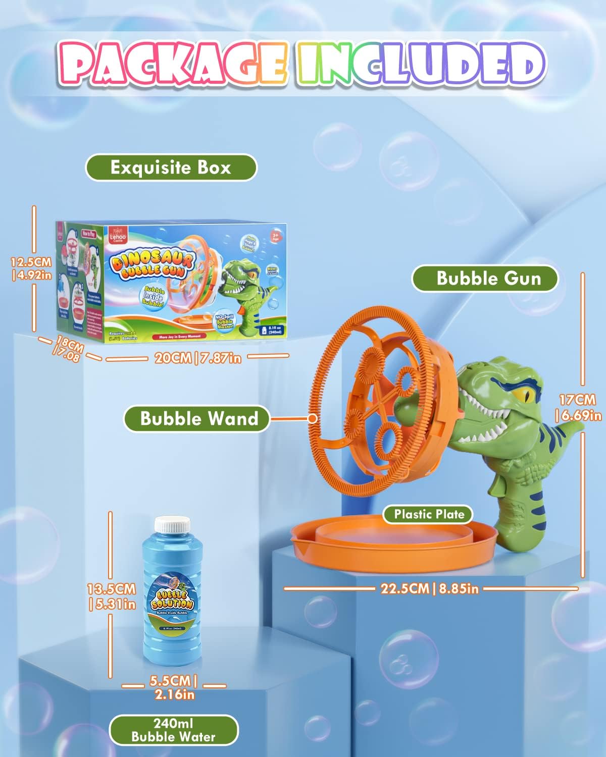 Pistola de burbujas de dinosaurio es el juguete perfecto para niños, que convierte cualquier momento en una experiencia mágica.
