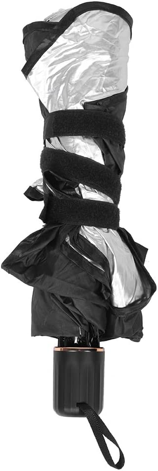 Fabricado con materiales de alta calidad, incluyendo hierro y tela de goma plateada, este parasol tiene alto rendimiento de aislamiento térmico, alto índice de refracción y fuerte capacidad de sombreado, garantizando una protección óptima en cualquier situación.