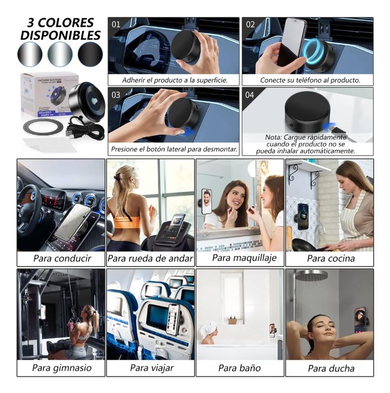 Con un diseño de ventosa magnética de alta calidad, este soporte garantiza que tu teléfono permanezca en su lugar de forma segura, incluso en terrenos irregulares. Ideal para viajes en automóvil, vidrio o tablero. 🌟🚘