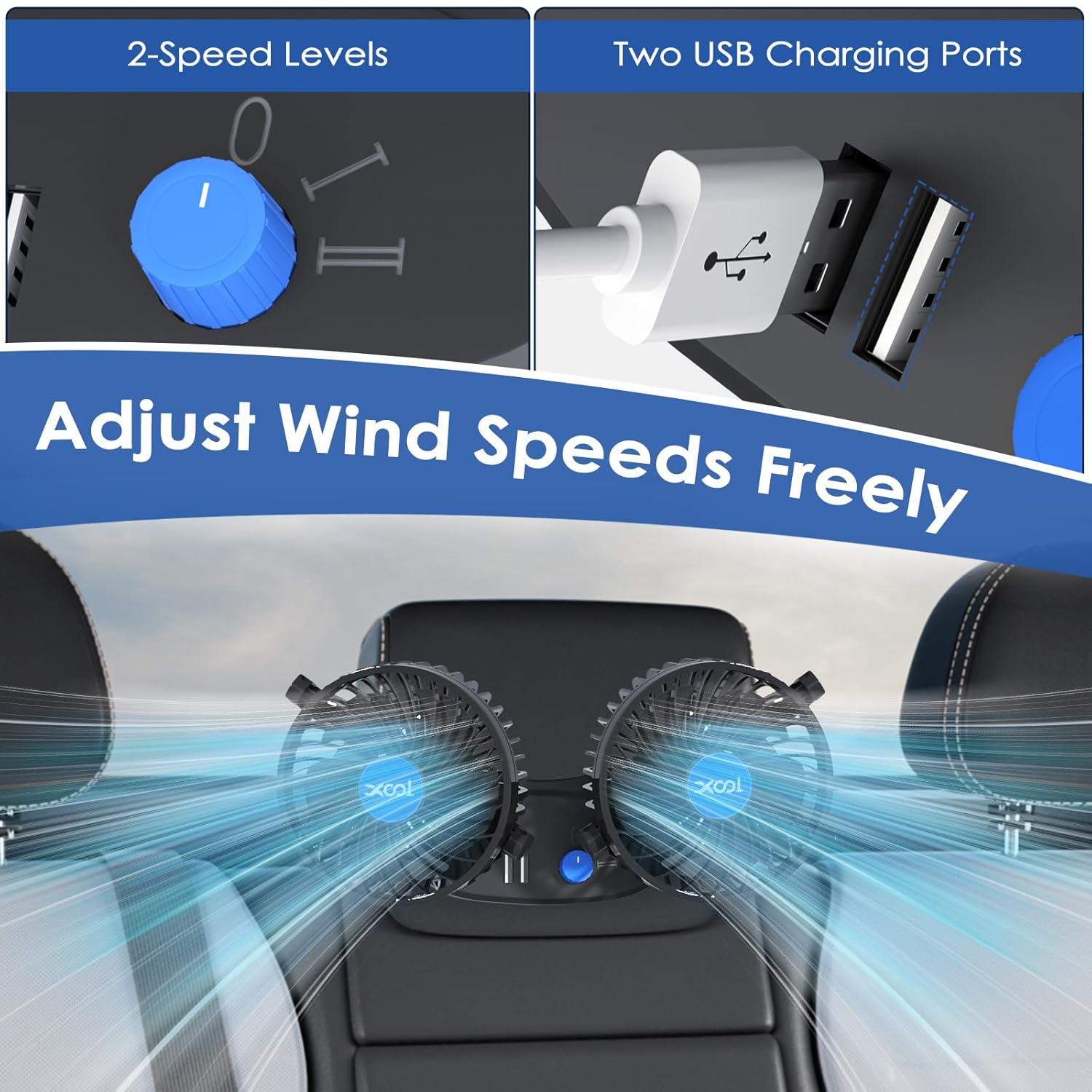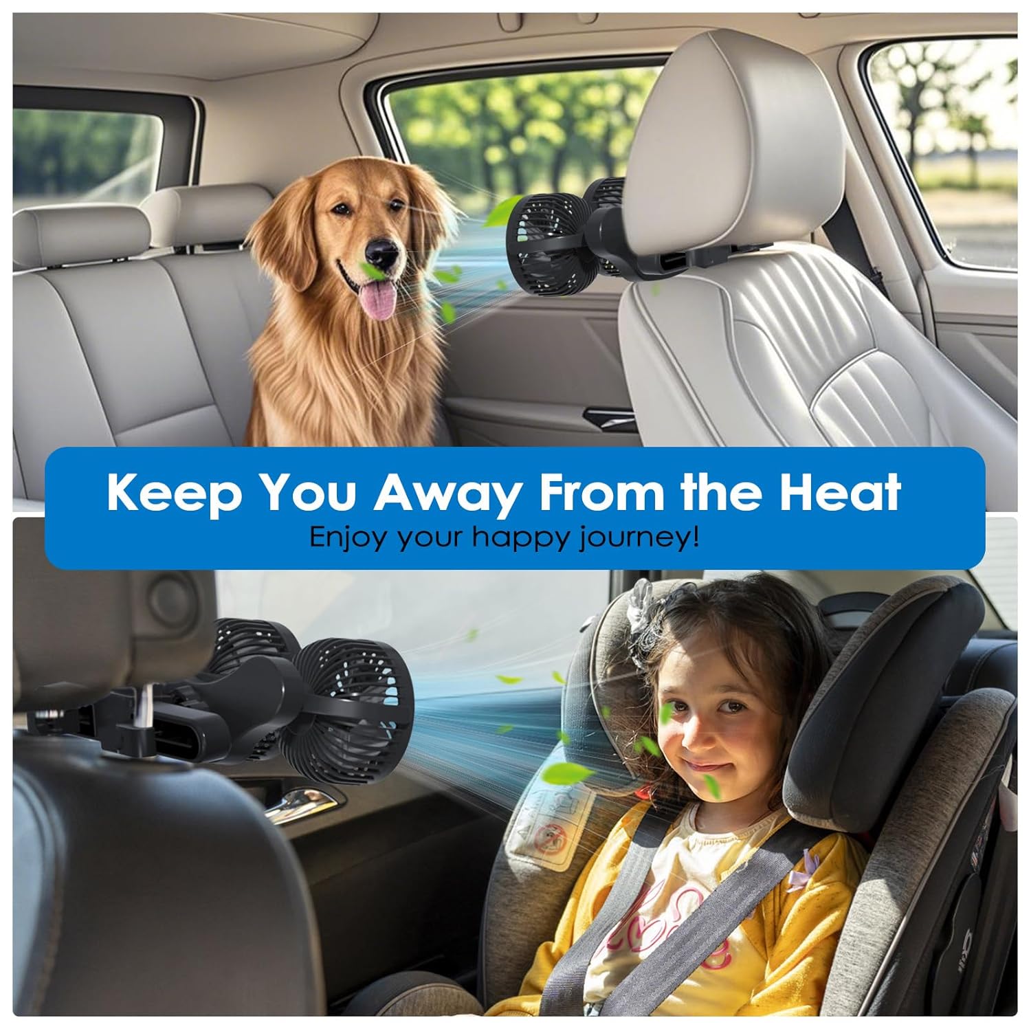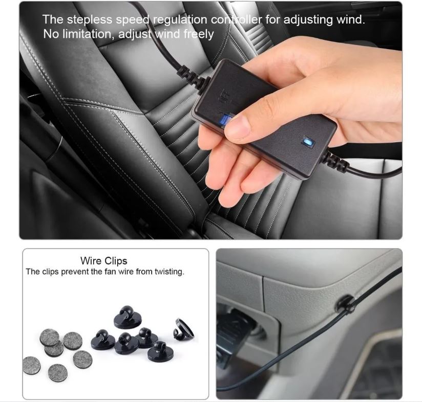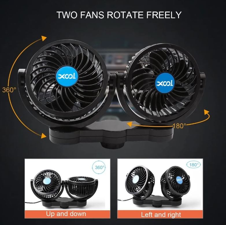 Ventilador de coche XOOL 12V es la solución perfecta para mantener la temperatura en tu vehículo agradable y cómoda, especialmente para los pasajeros del asiento trasero y mascotas.