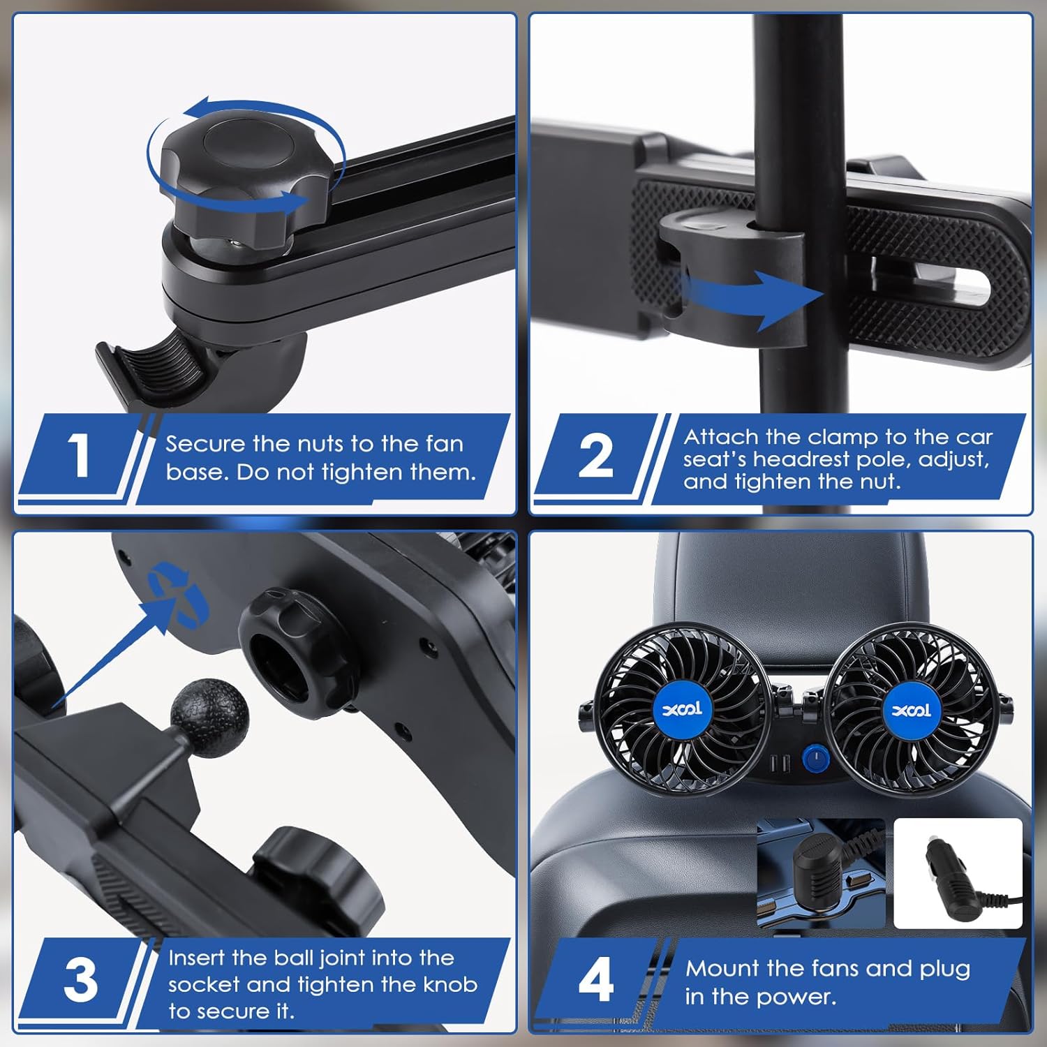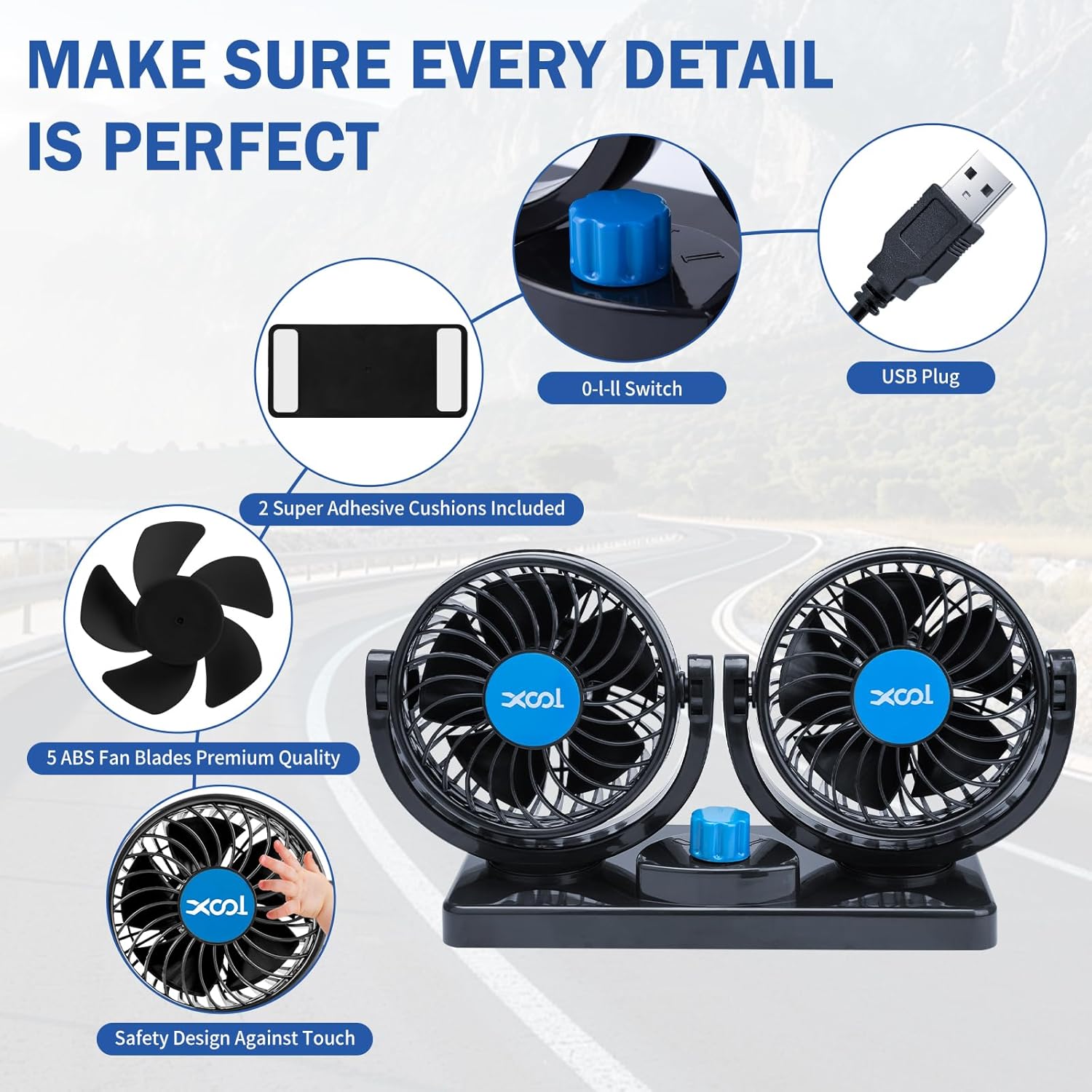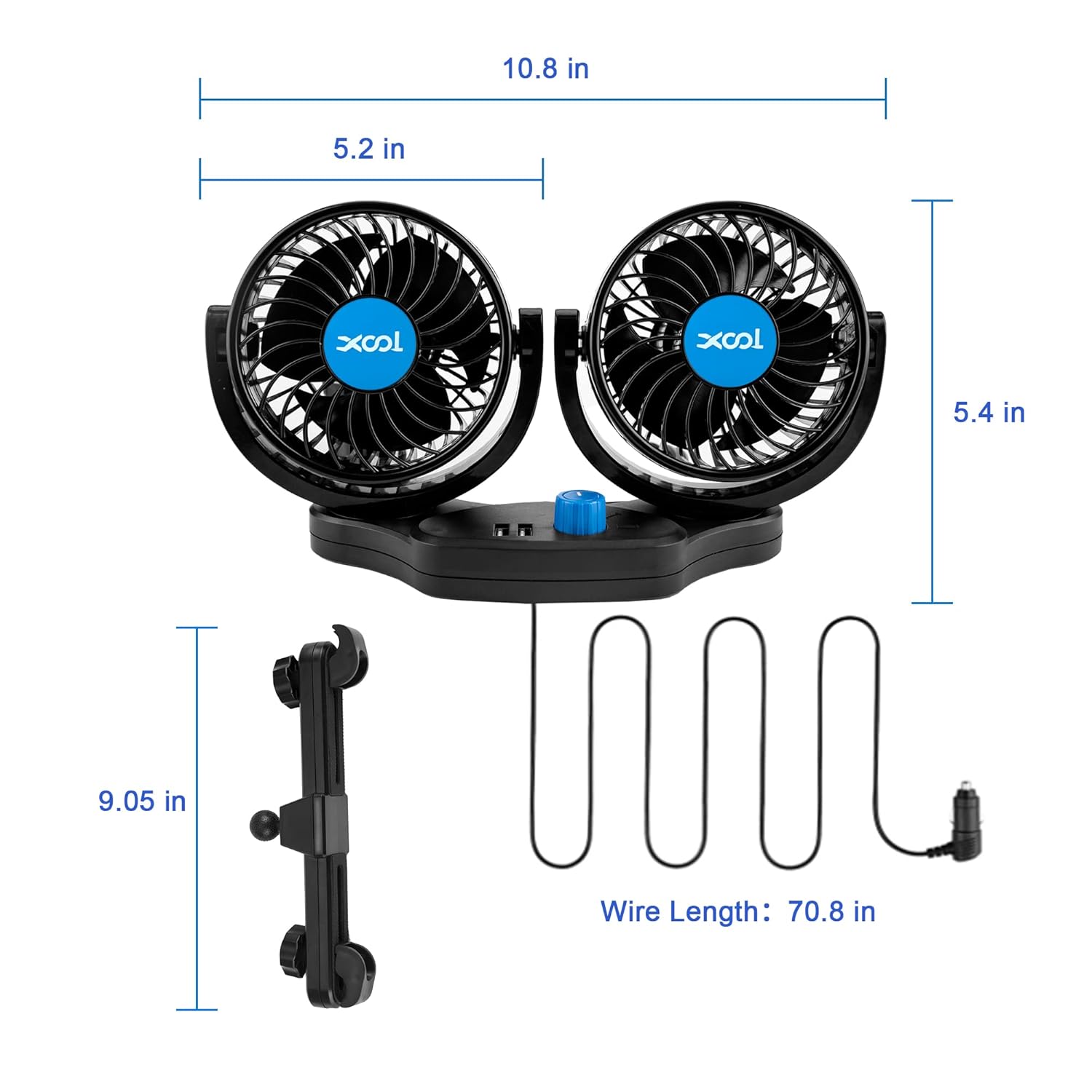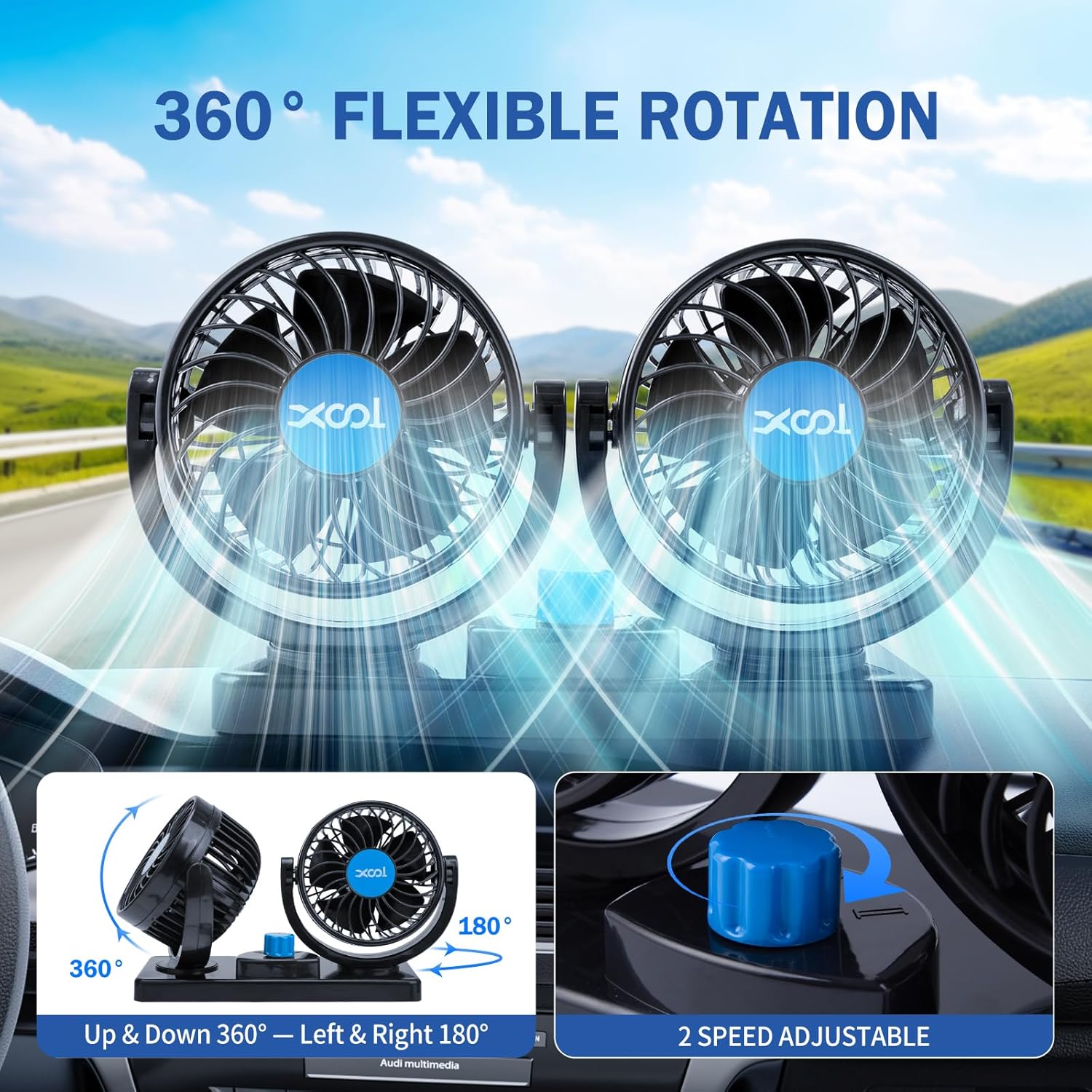 Ventilador de coche XOOL 12V es la solución perfecta para mantener la temperatura en tu vehículo agradable y cómoda, especialmente para los pasajeros del asiento trasero y mascotas.